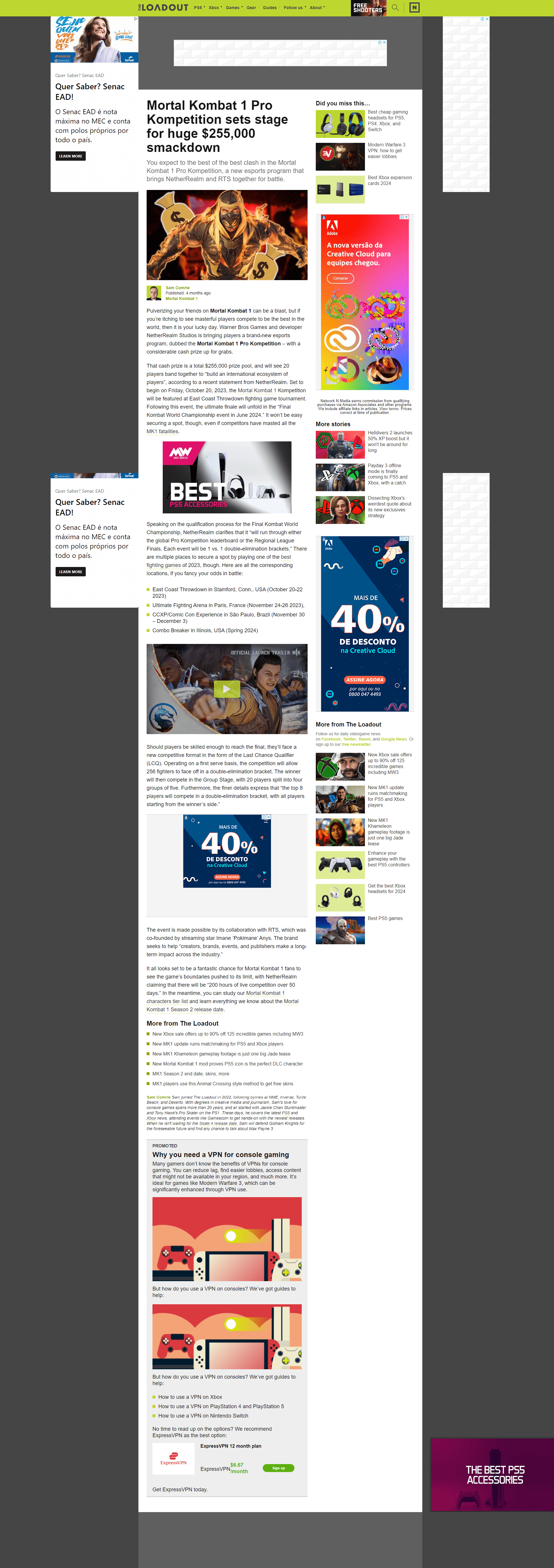 The organizers stated "Warner Bros. Games, NetherRealm Studios, and RTS today announced the Mortal Kombat 1 Pro Kompetition, a new global esports program operated by RTS featuring the latest installment of the iconic Mortal Kombat videogame franchise, featuring a $255,000 total prize pool, the new league aims to build an international ecosystem of players and will kick off on Oct. 20 at the East Coast Throwdown fighting game tournament. The Pro Kompetiton will conclude with 20 players competing at the Final Kombat World Championship event in June 2024."